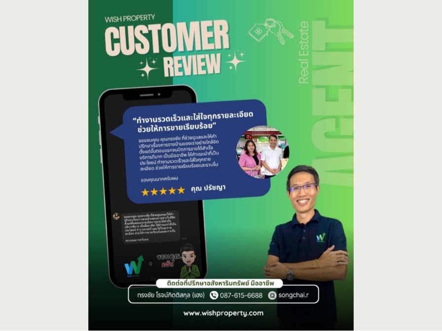ขอขอบคุณ คุณทรงชัย ที่ช่วยดูแลและให้คำปรึกษาเรื่องการขายบ้านของเราอย่างใกล้ชิด ตั้งแต่ขั้นตอนแรกจนปิดการขายได้สำเร็จ